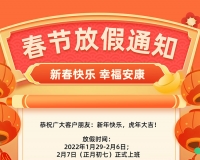 尊敬的用户: 超博全体同仁恭祝您2022新年快乐,虎年大吉,虎虎生威!让我们年后再见!! 一、2022年1月29-2月6日;2月7日(正月初七)正式上班。 二、放假期间除平台线上业务外,