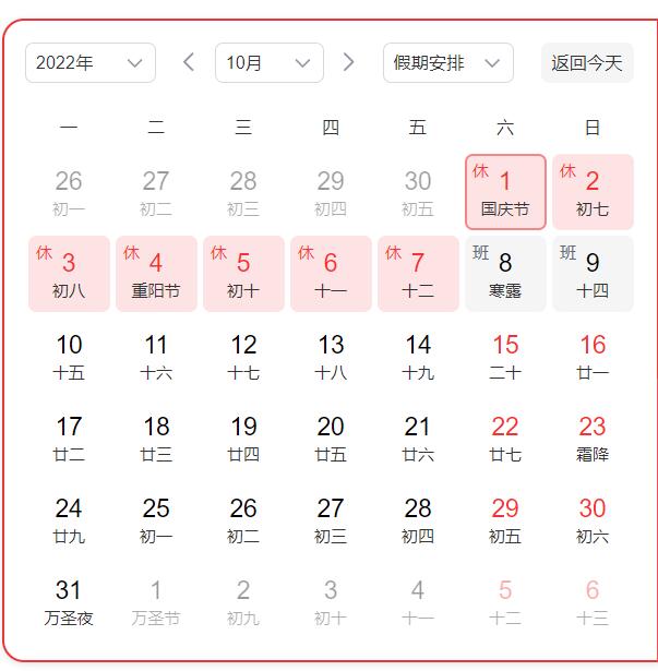 根据国务院关于法定节假日相关规定,结合我司实际情况,现将2022年国庆节放假安排通知如下: